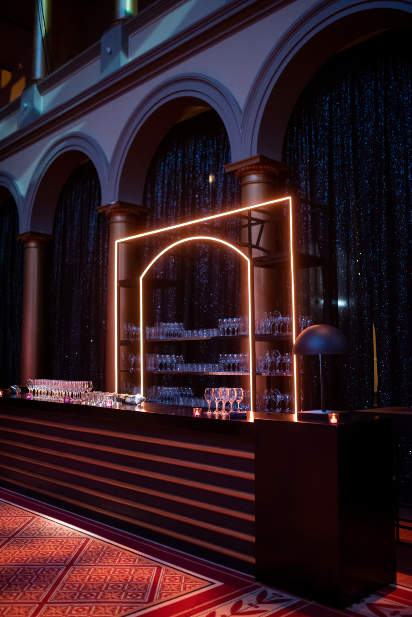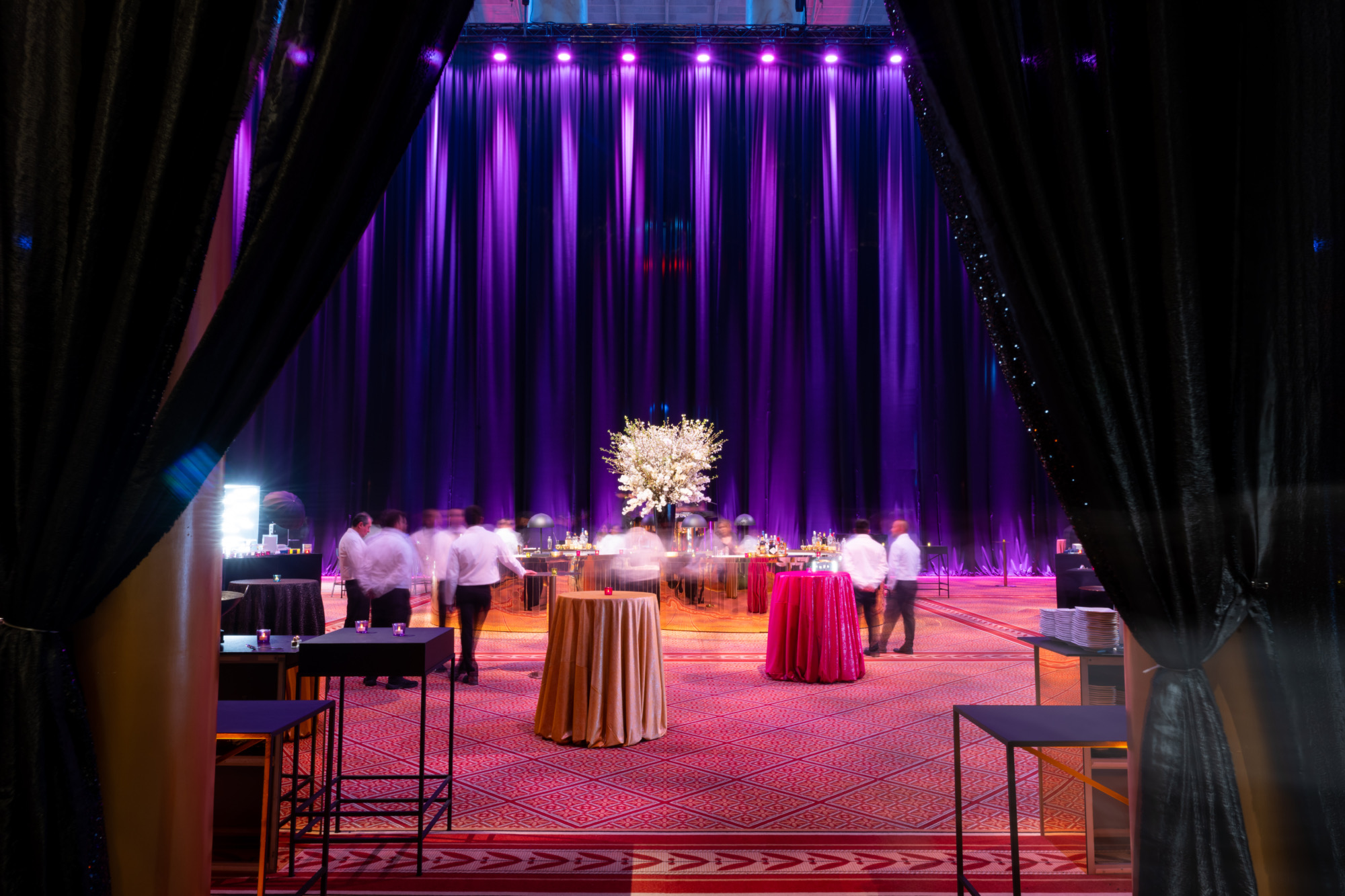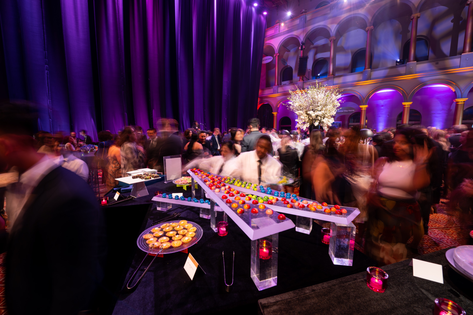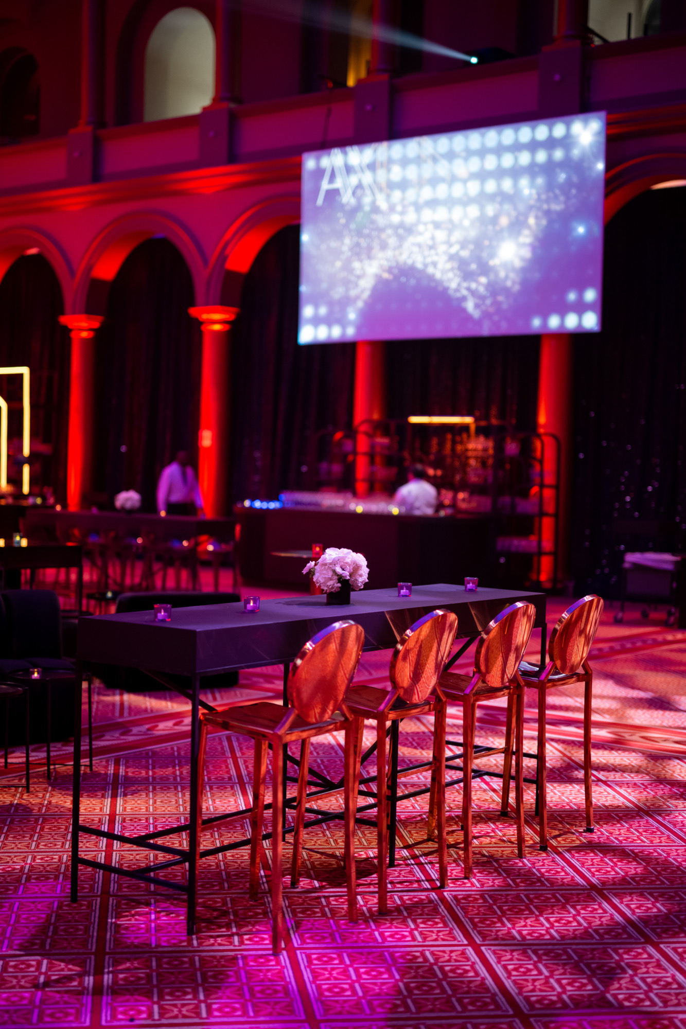 Partnering with Dufour Collaborative, we transformed the National Building Museum into a dazzling stage for Axios and Live Nation’s Correspondents’ Dinner after-party. Lainey Wilson headlined the night, while black, gold, silver, and neon accents set the scene for an unforgettable celebration that mixed Washington prestige with high-voltage performance energy.
