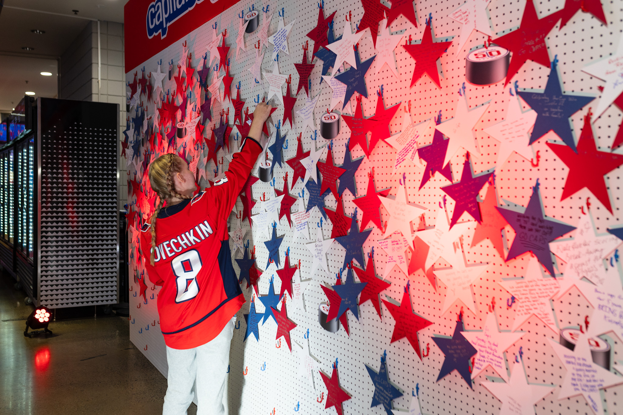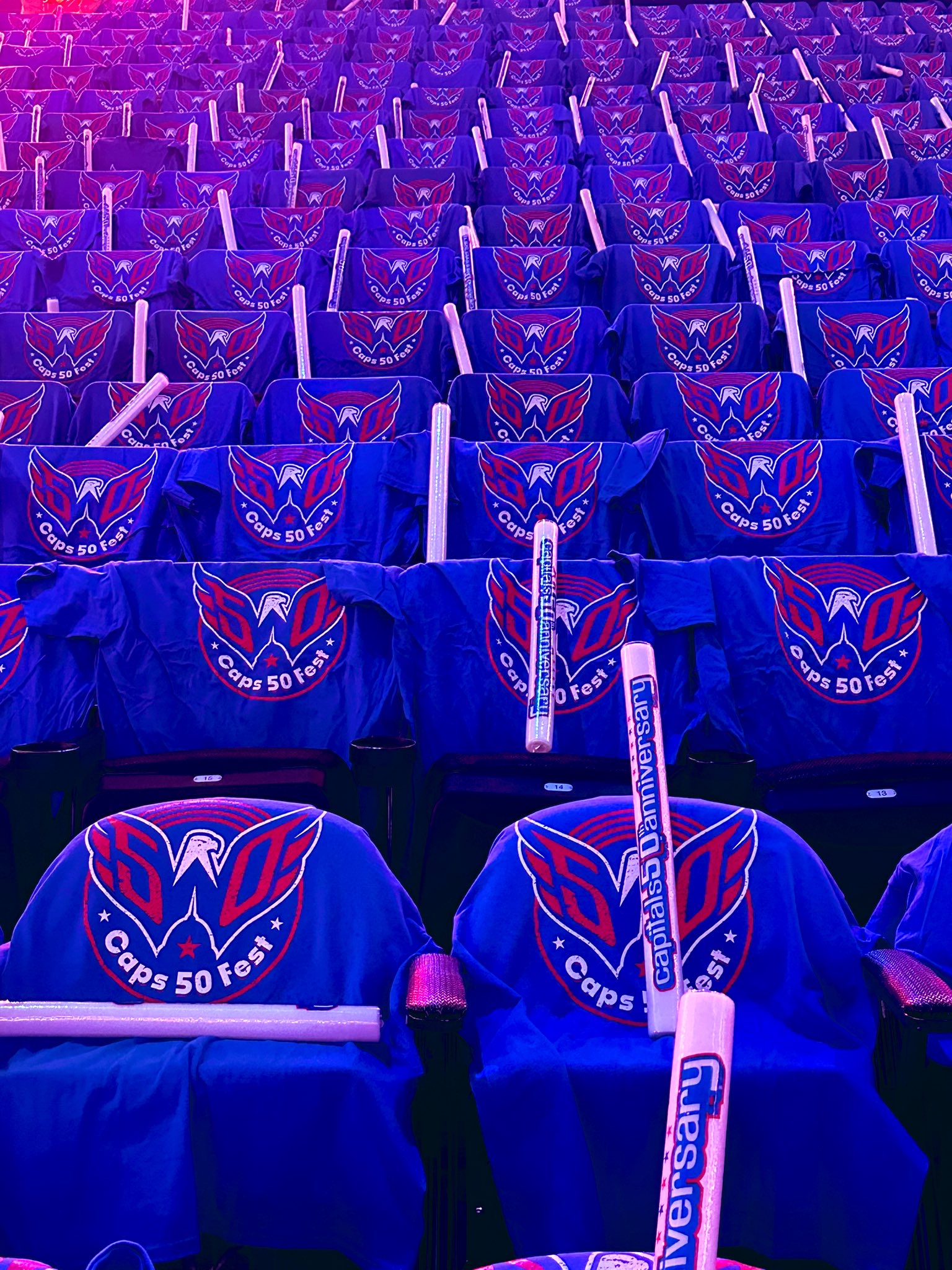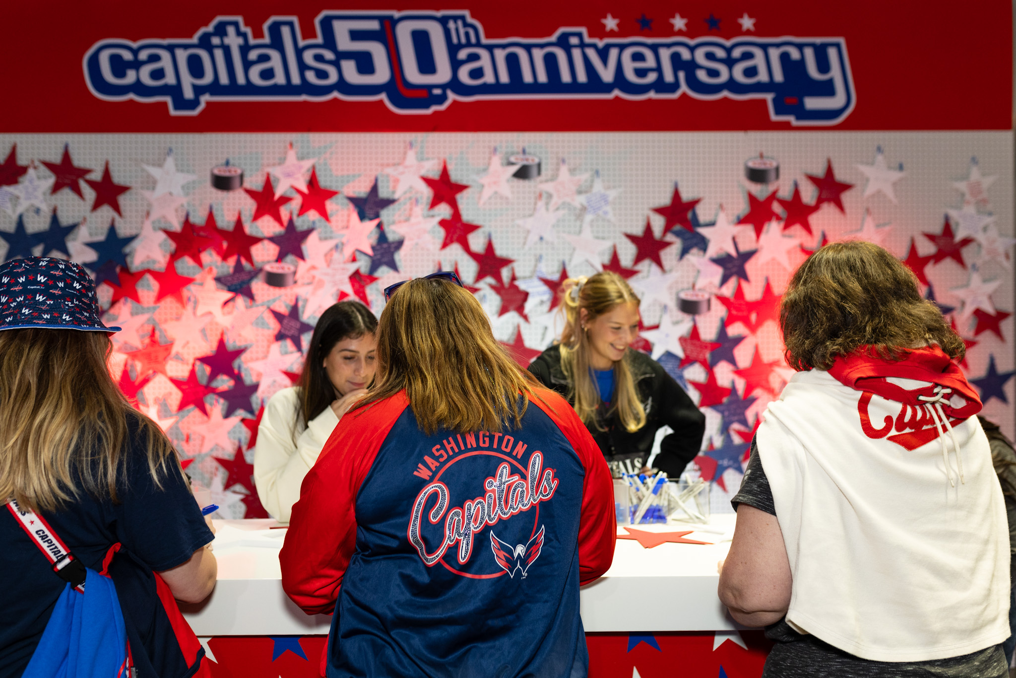 To celebrate the Capitals’ 50th anniversary, the arena came alive with an immersive fan experience. Guests entered through a bold branded arch and explored photo ops and interactive activations throughout the concourse. The night culminated on stage beneath a 20-foot “50” and Caps logo, where past and current players joined the celebration before a high-energy concert by Third Eye Blind.