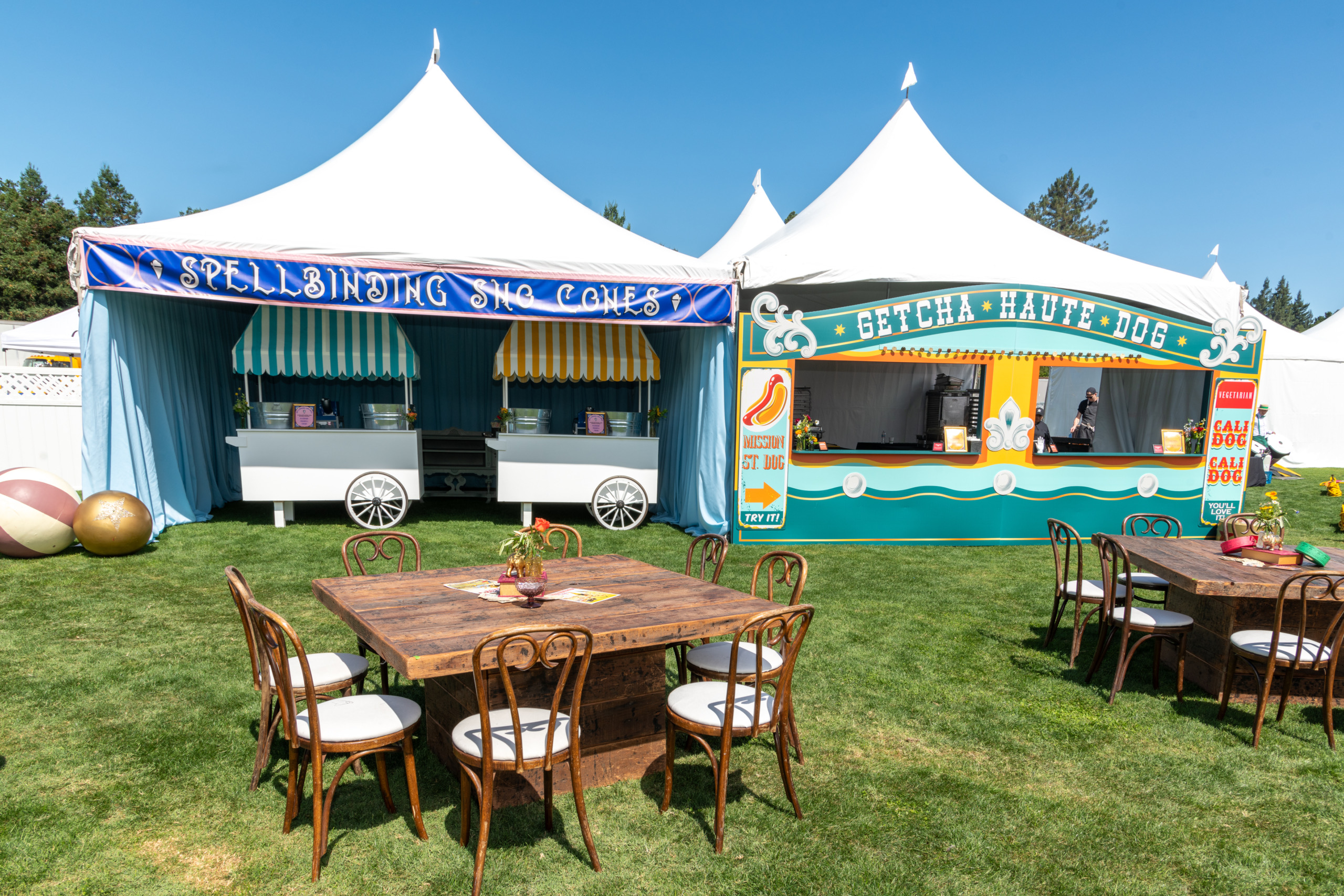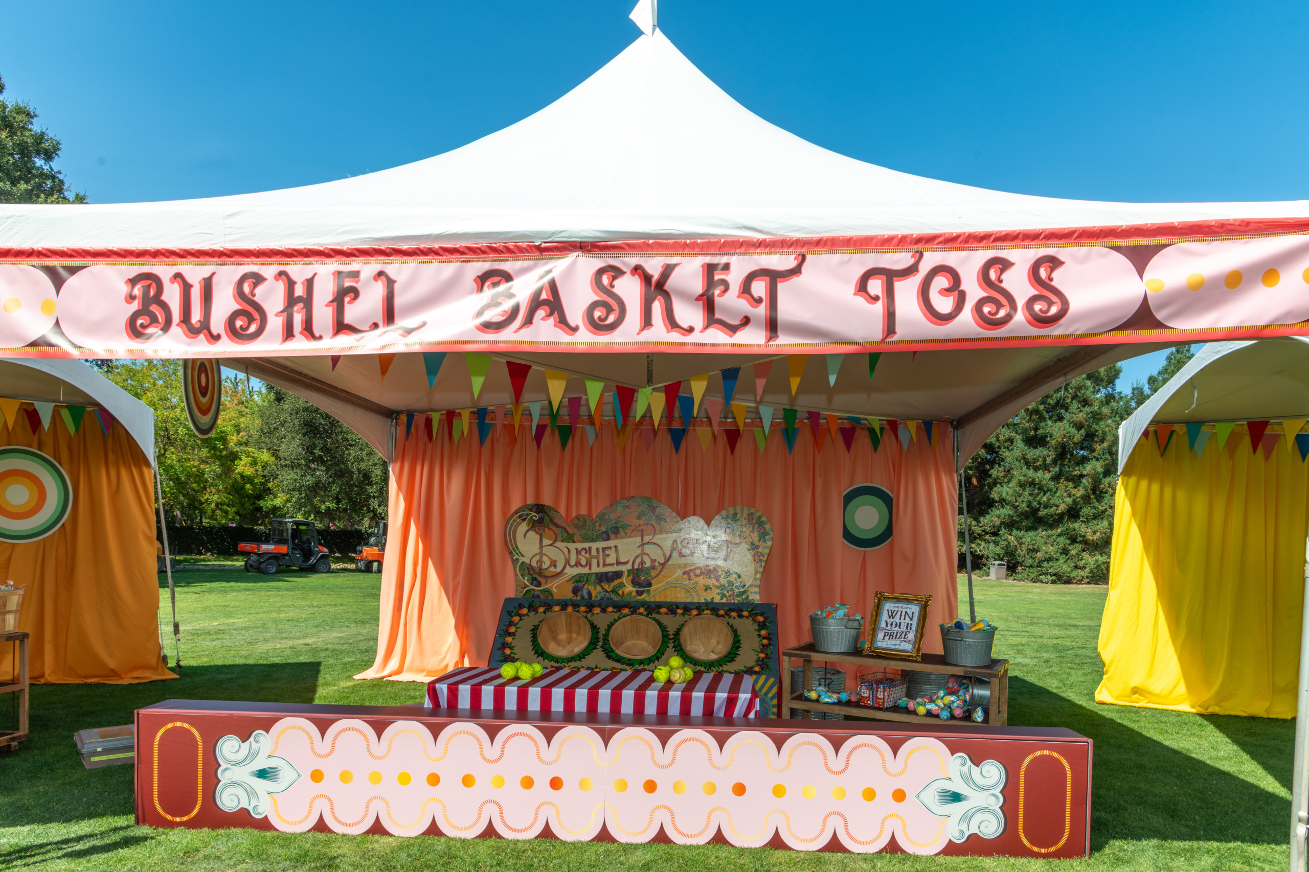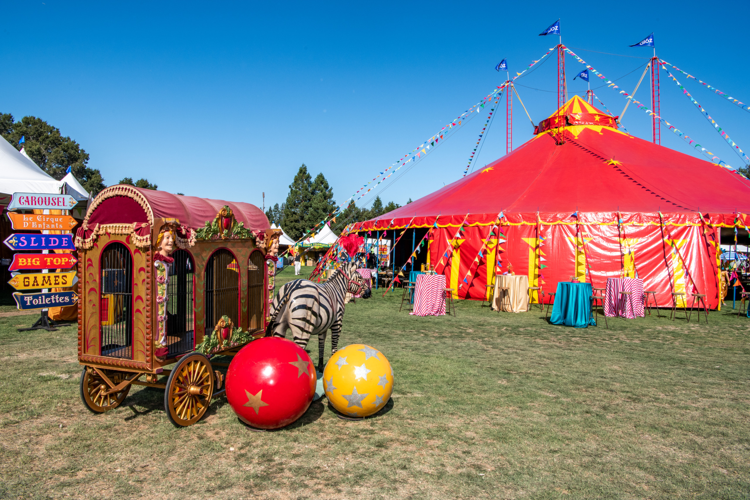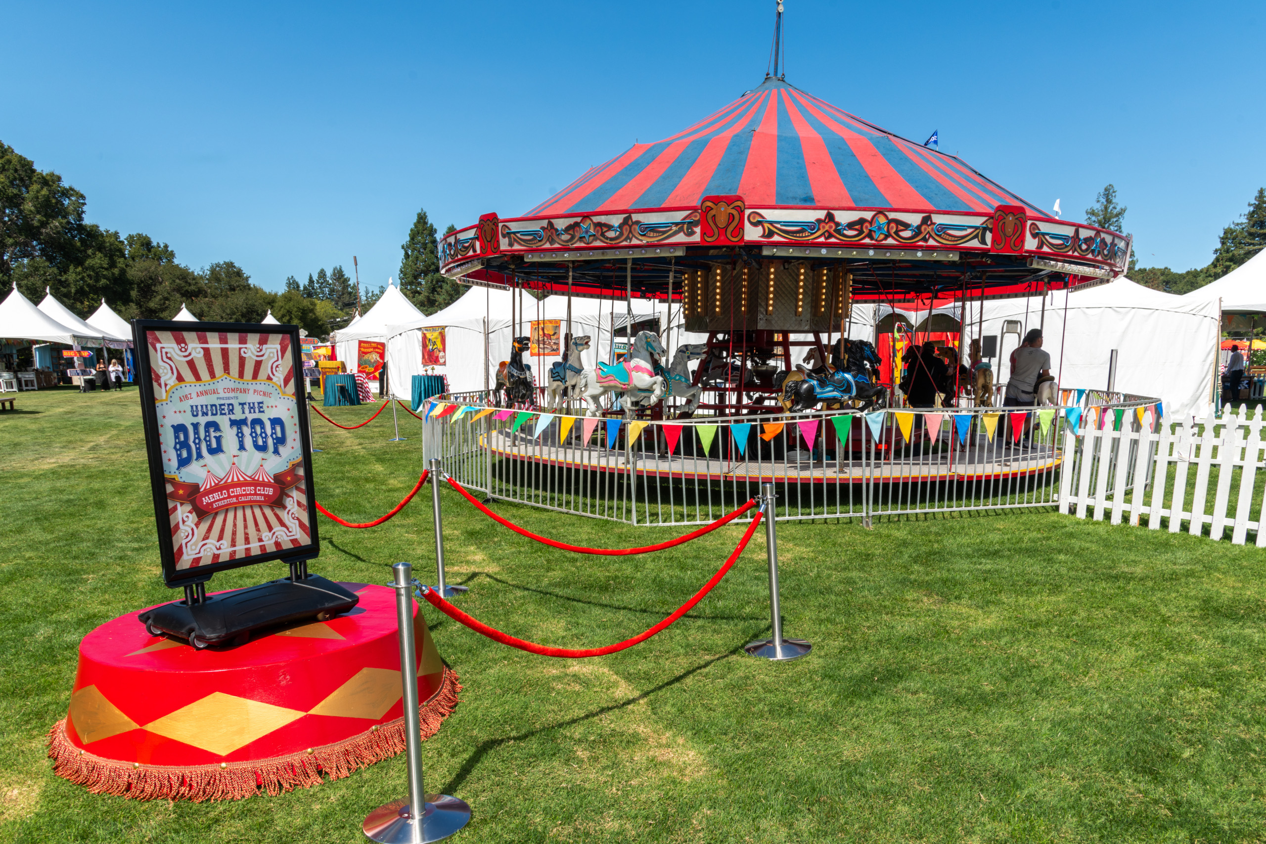This company picnic turned a quiet park into a custom circus spectacular. Guests wandered through striped food tents, played classic midway games, and posed for photo ops beneath bold arches and graphics. With rides, treats, and surprises around every corner, it was a big-top celebration of fun for all ages.