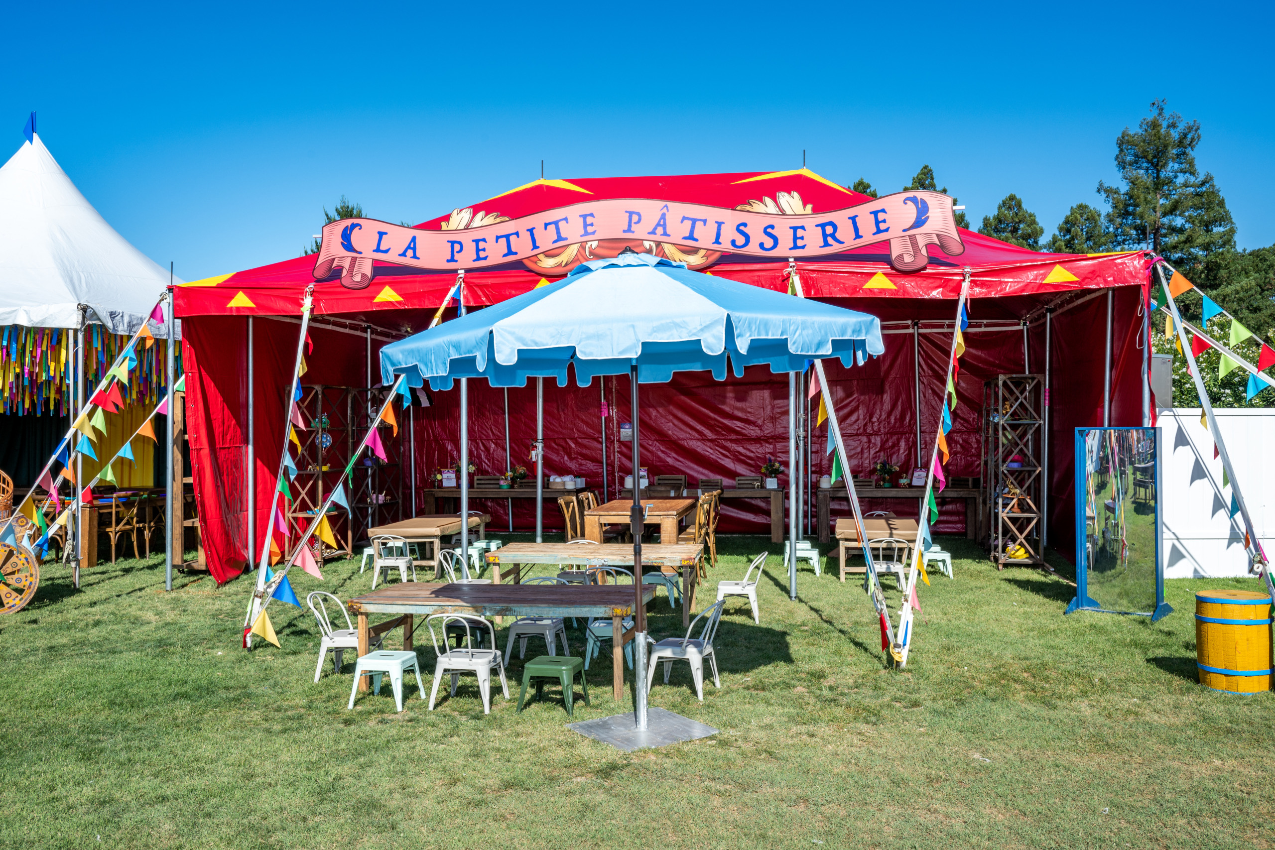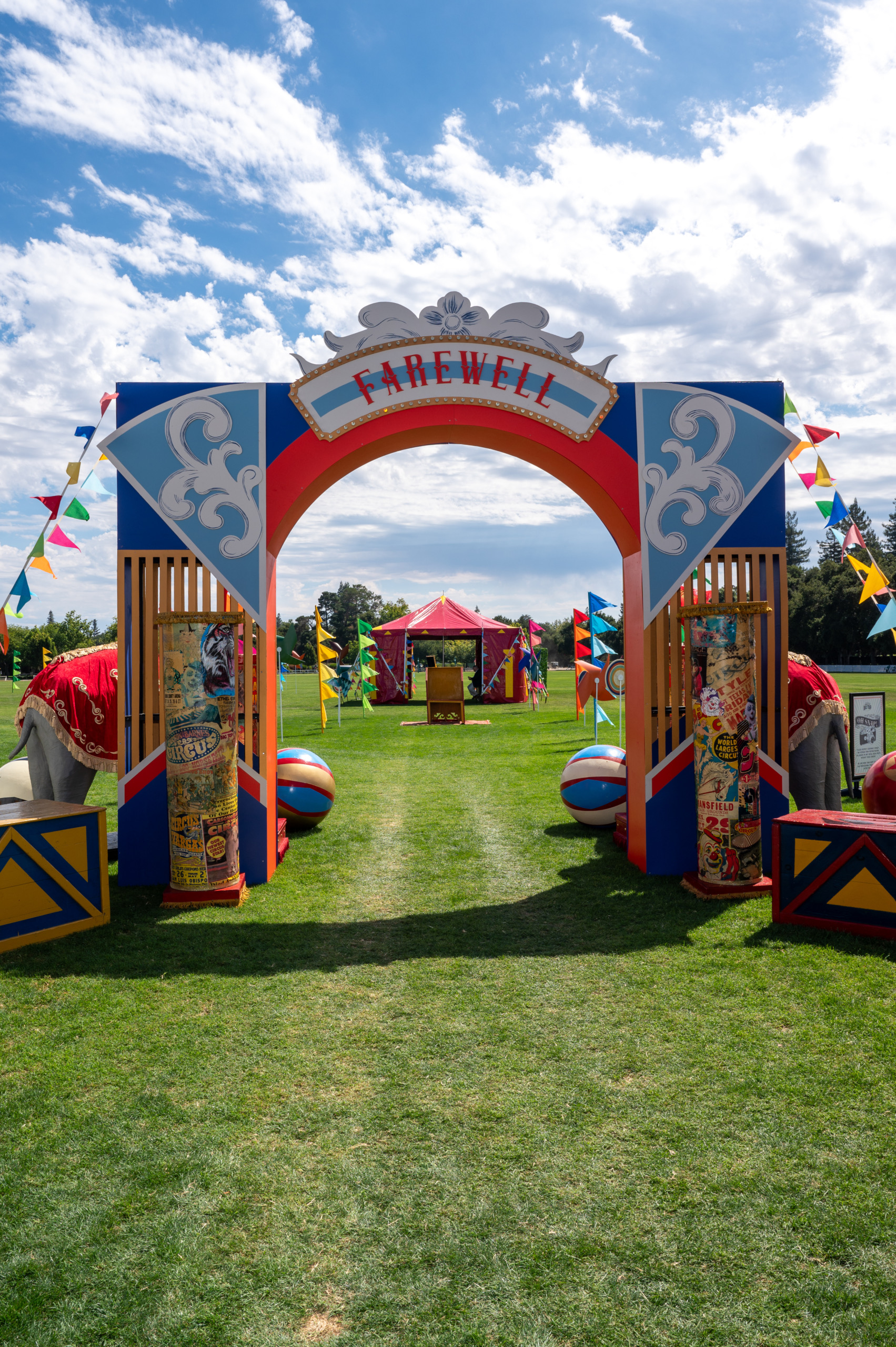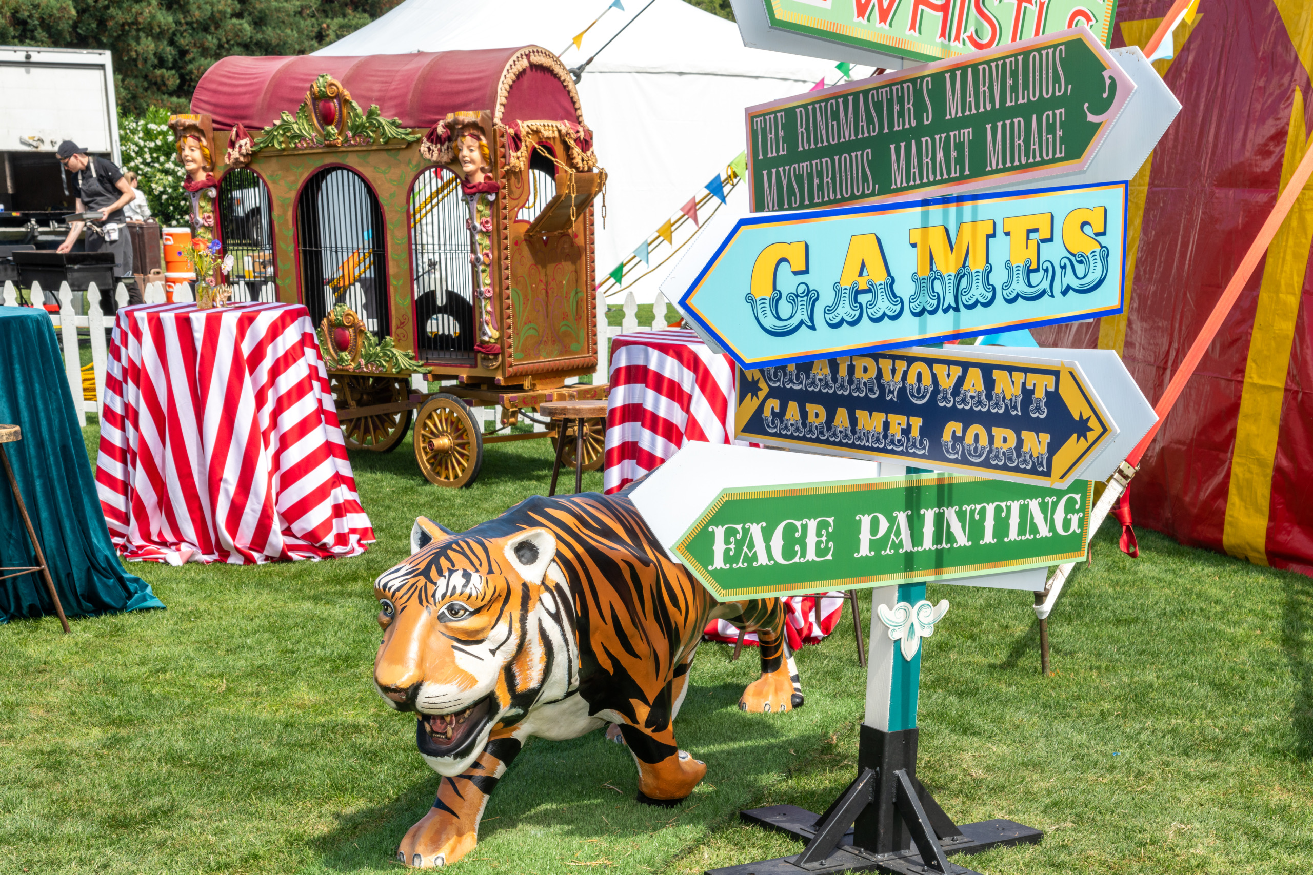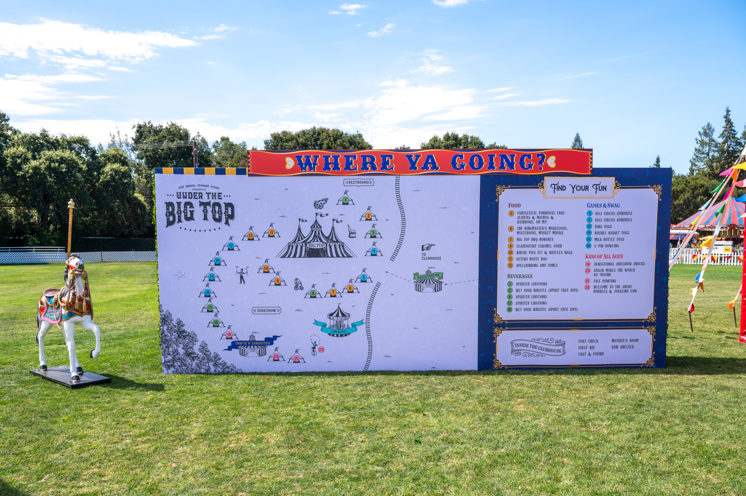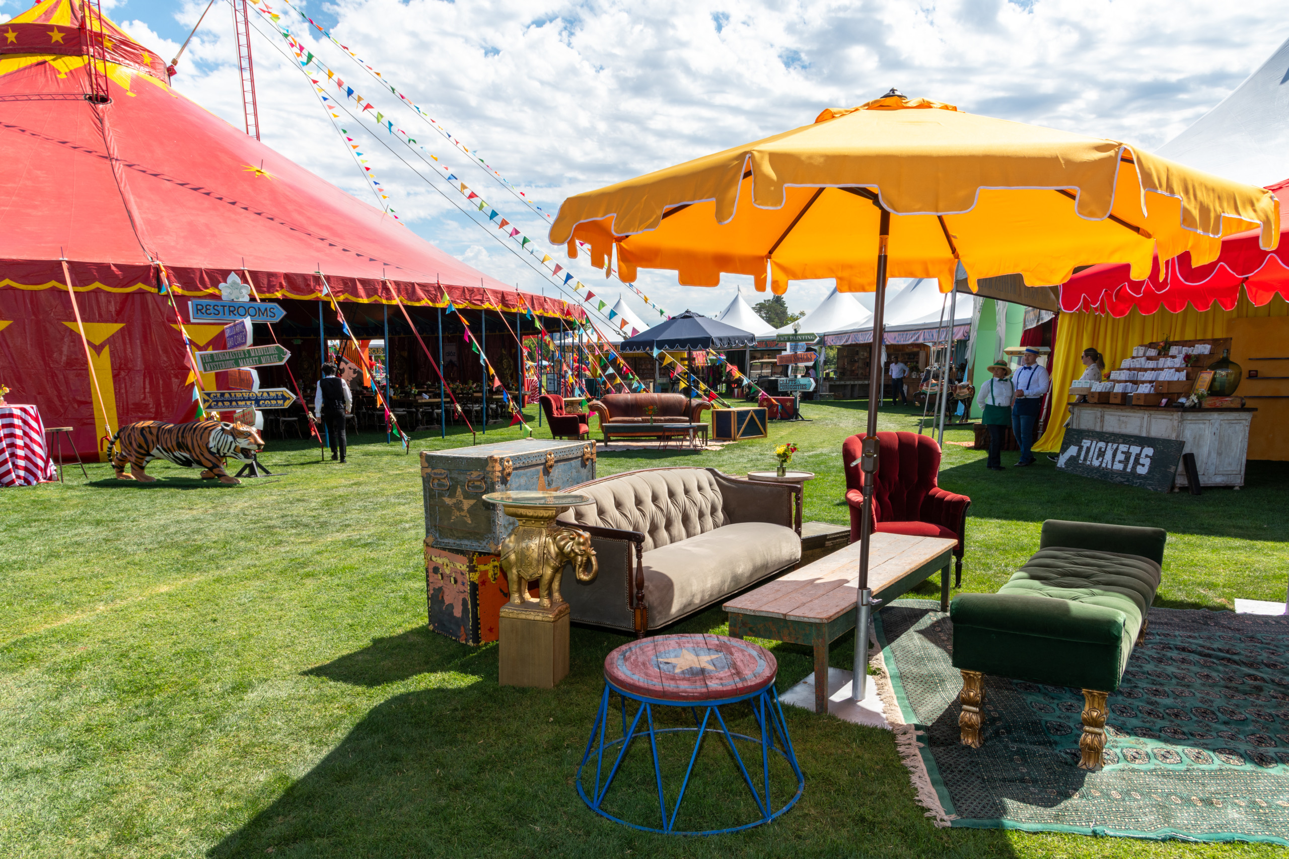 This company picnic turned a quiet park into a custom circus spectacular. Guests wandered through striped food tents, played classic midway games, and posed for photo ops beneath bold arches and graphics. With rides, treats, and surprises around every corner, it was a big-top celebration of fun for all ages.