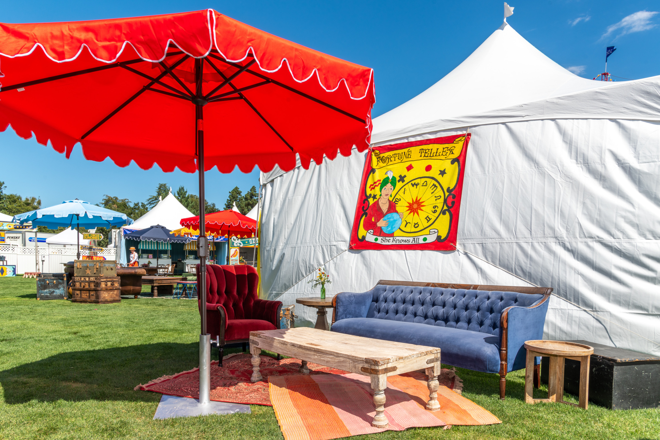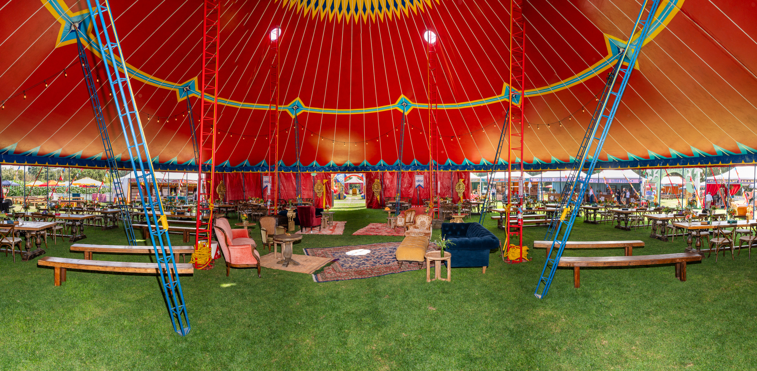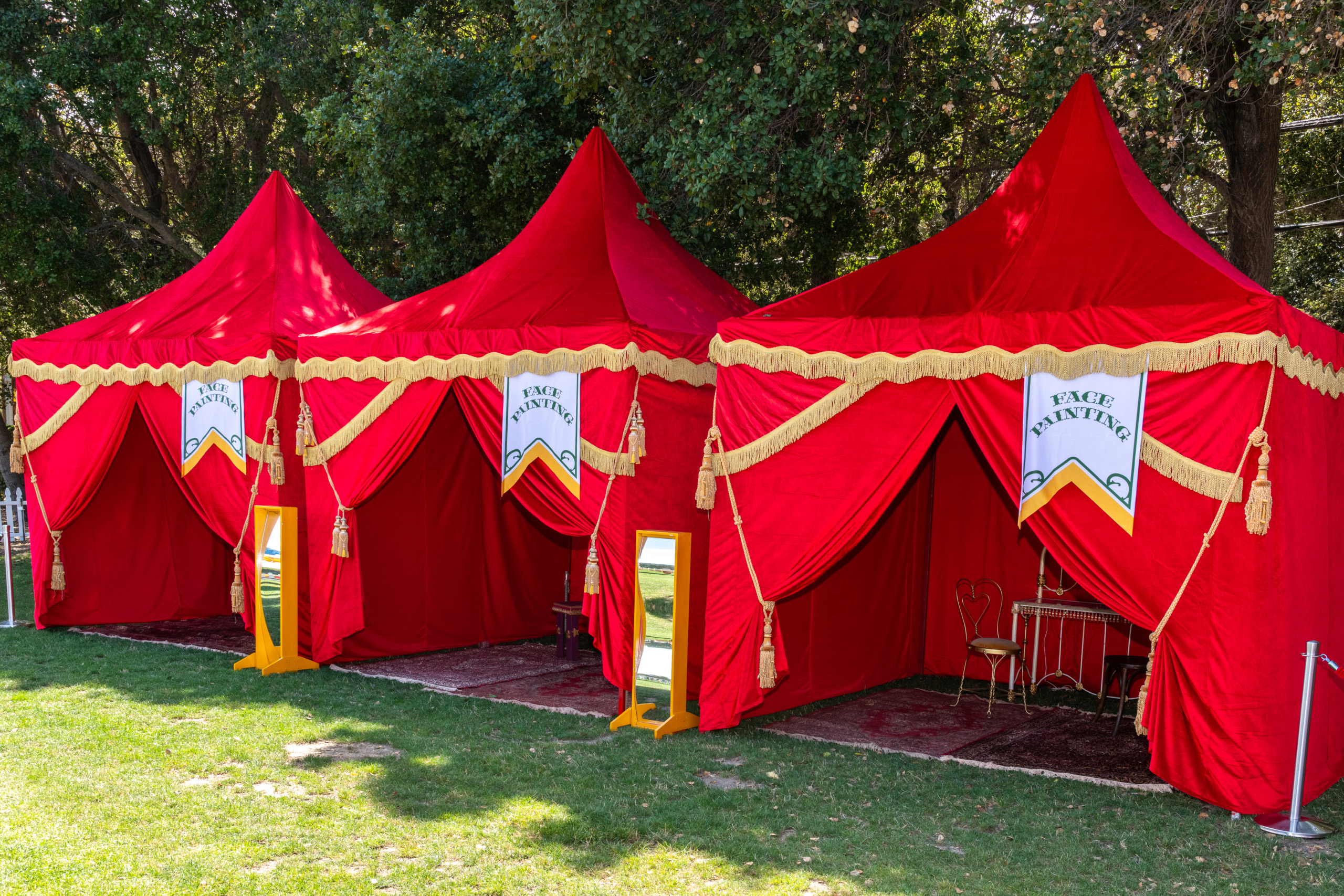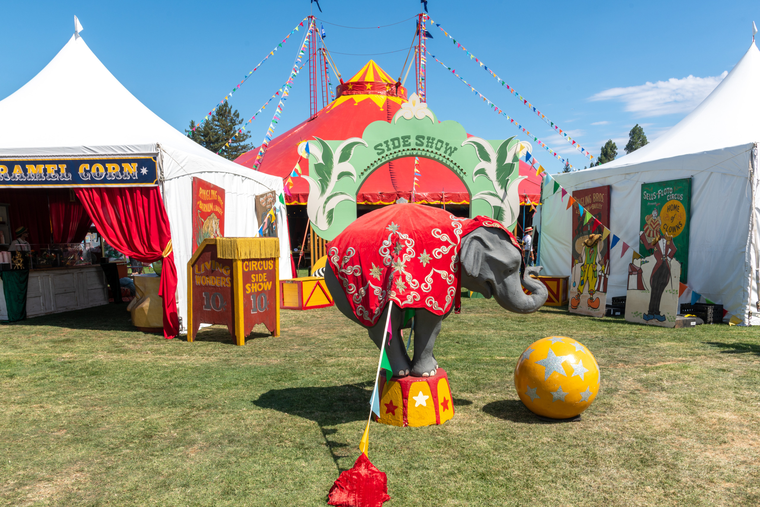 This company picnic turned a quiet park into a custom circus spectacular. Guests wandered through striped food tents, played classic midway games, and posed for photo ops beneath bold arches and graphics. With rides, treats, and surprises around every corner, it was a big-top celebration of fun for all ages.