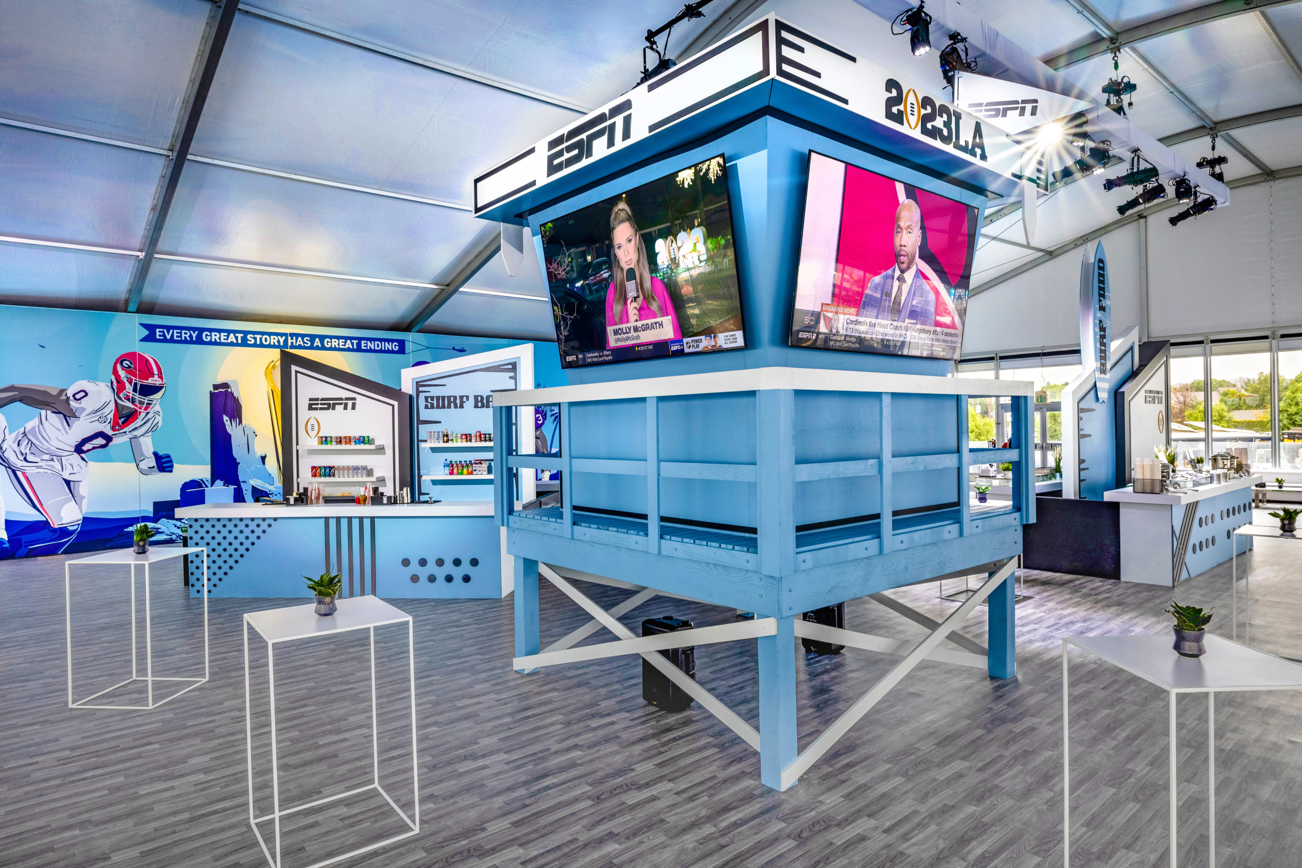 Surf’s up in Inglewood, where ESPN’s fan experience brought West Coast energy to the College Football Championship. Guests enjoyed great food, lounge spaces, big screens to catch every play, and plenty of photo ops—delivering the ultimate game-day celebration on and off the field.