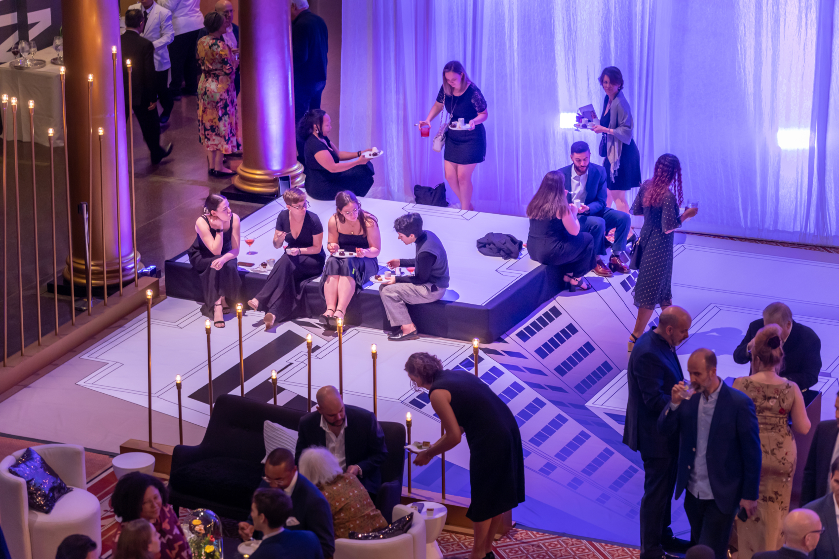 To celebrate 25 years of Bates White Economic Consulting, the Mellon Auditorium was transformed into a bright, creative, and delightfully quirky setting. Stripes, greenery, and cloud-inspired décor framed playful food stations and seating, with a design that shifted from day to night—mirroring the firm’s journey while keeping the celebration vibrant and full of surprise.