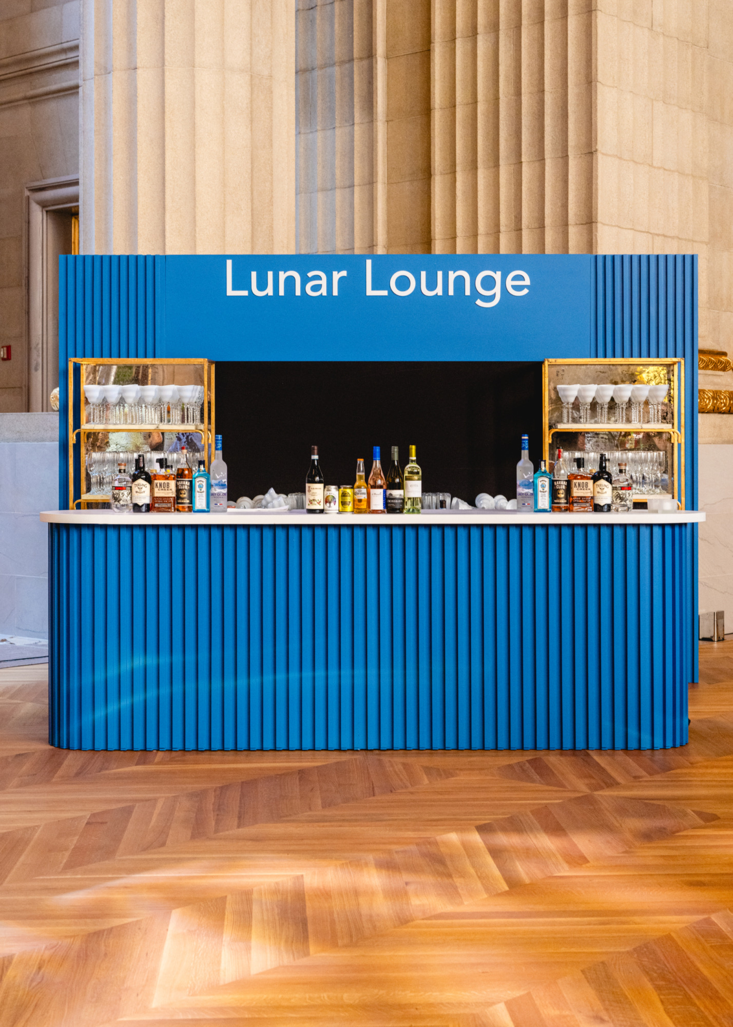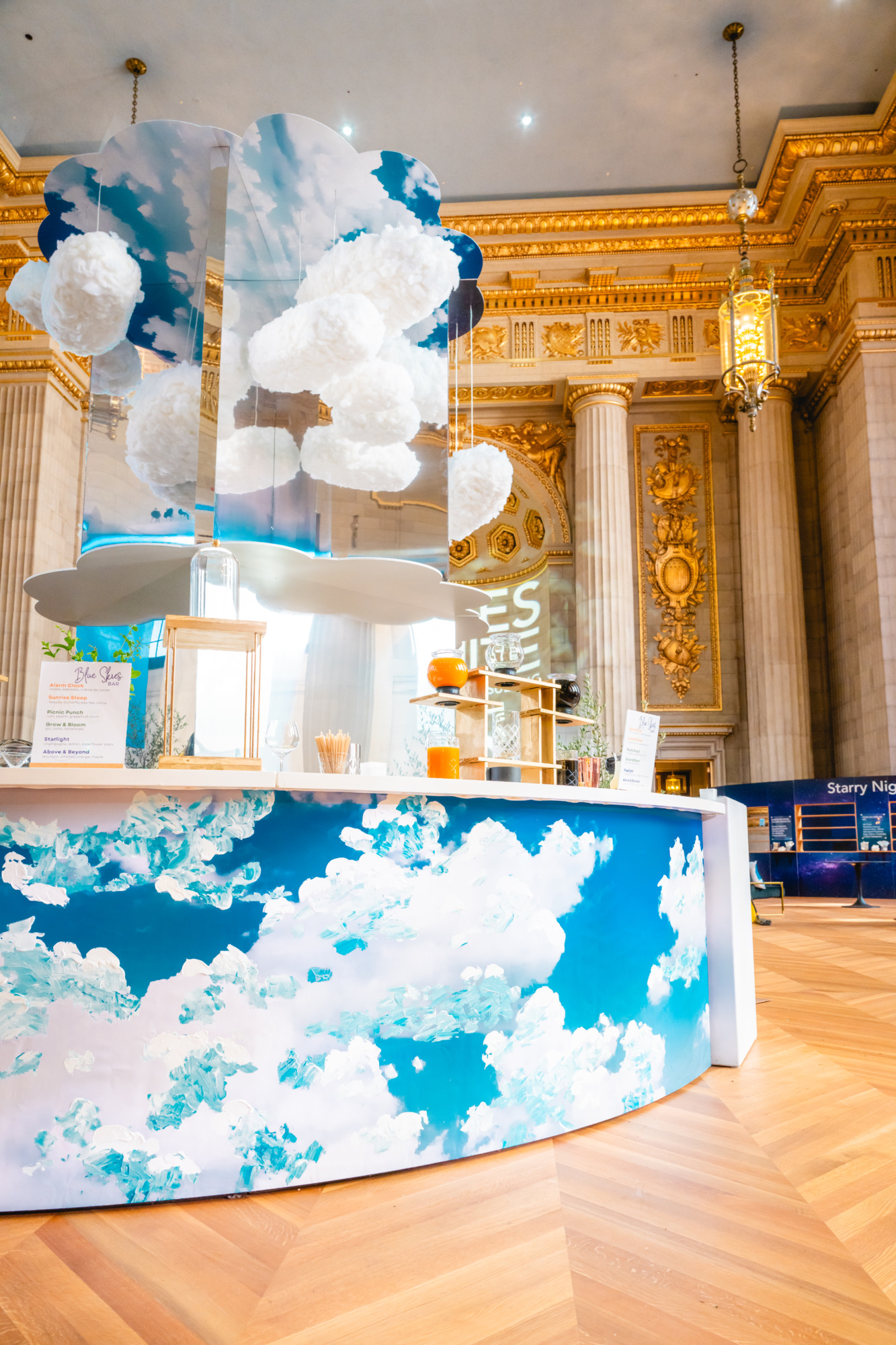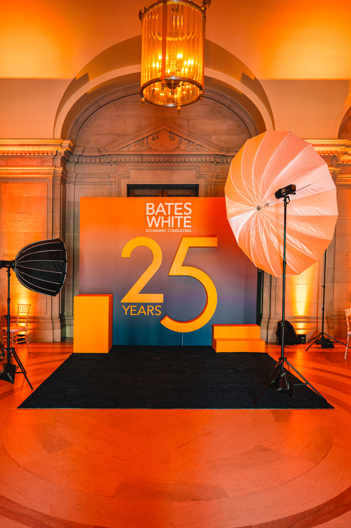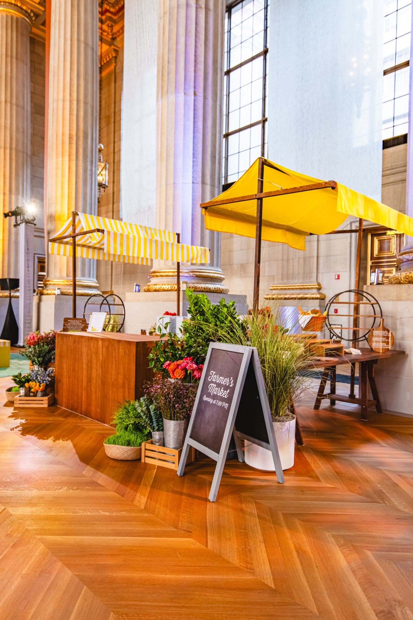 To celebrate 25 years of Bates White Economic Consulting, the Mellon Auditorium was transformed into a bright, creative, and delightfully quirky setting. Stripes, greenery, and cloud-inspired décor framed playful food stations and seating, with a design that shifted from day to night—mirroring the firm’s journey while keeping the celebration vibrant and full of surprise.