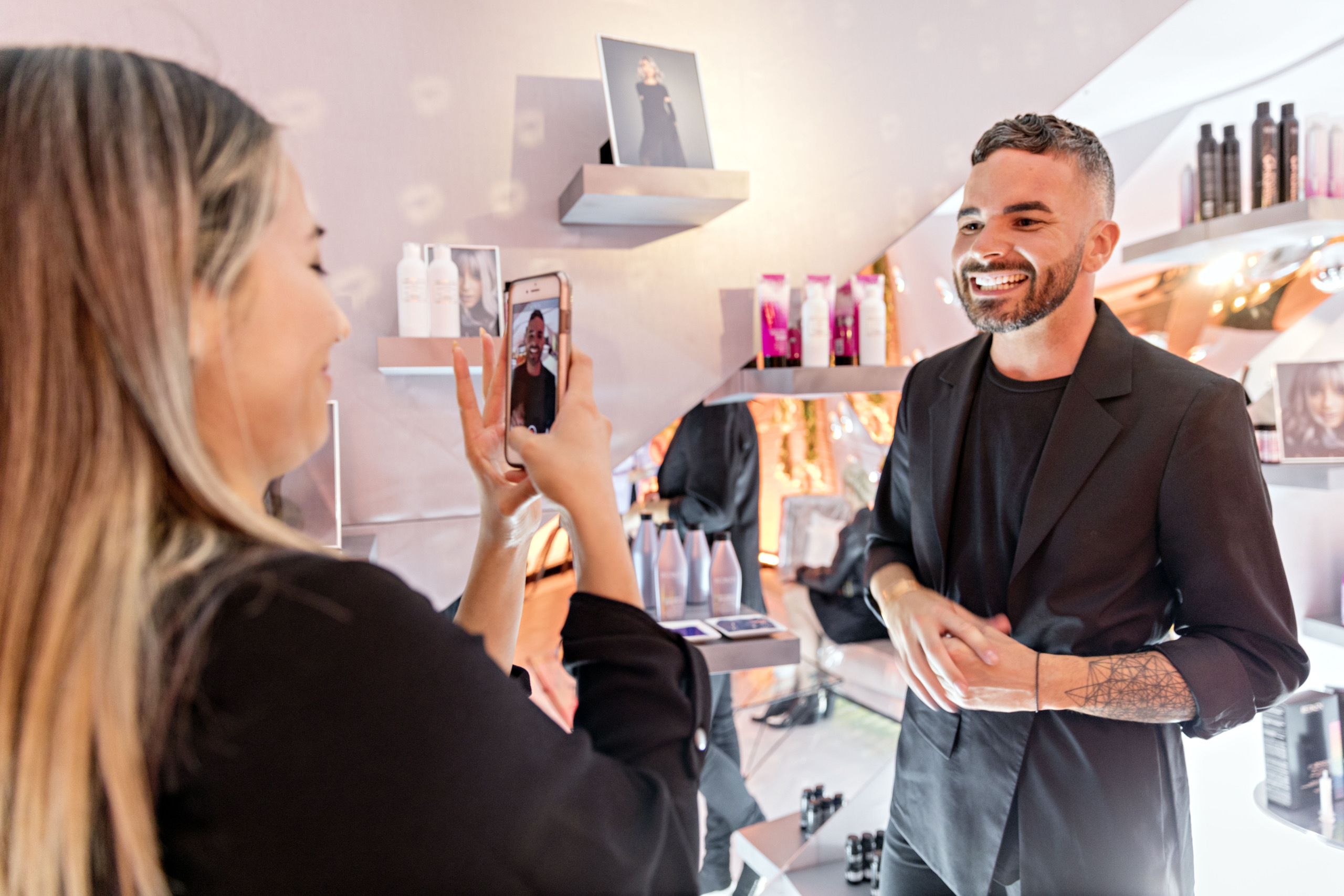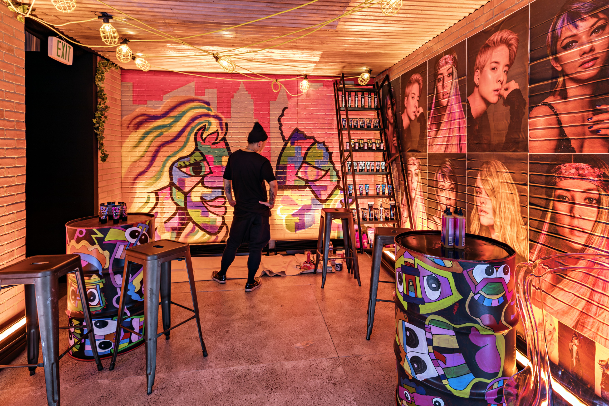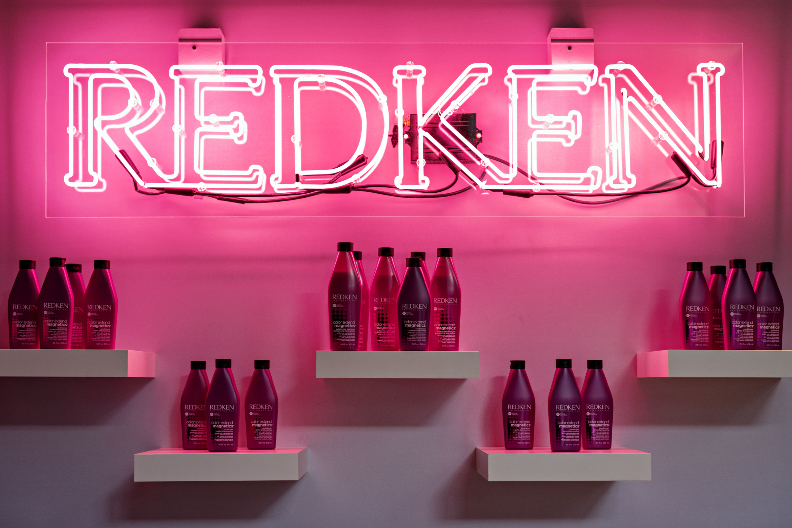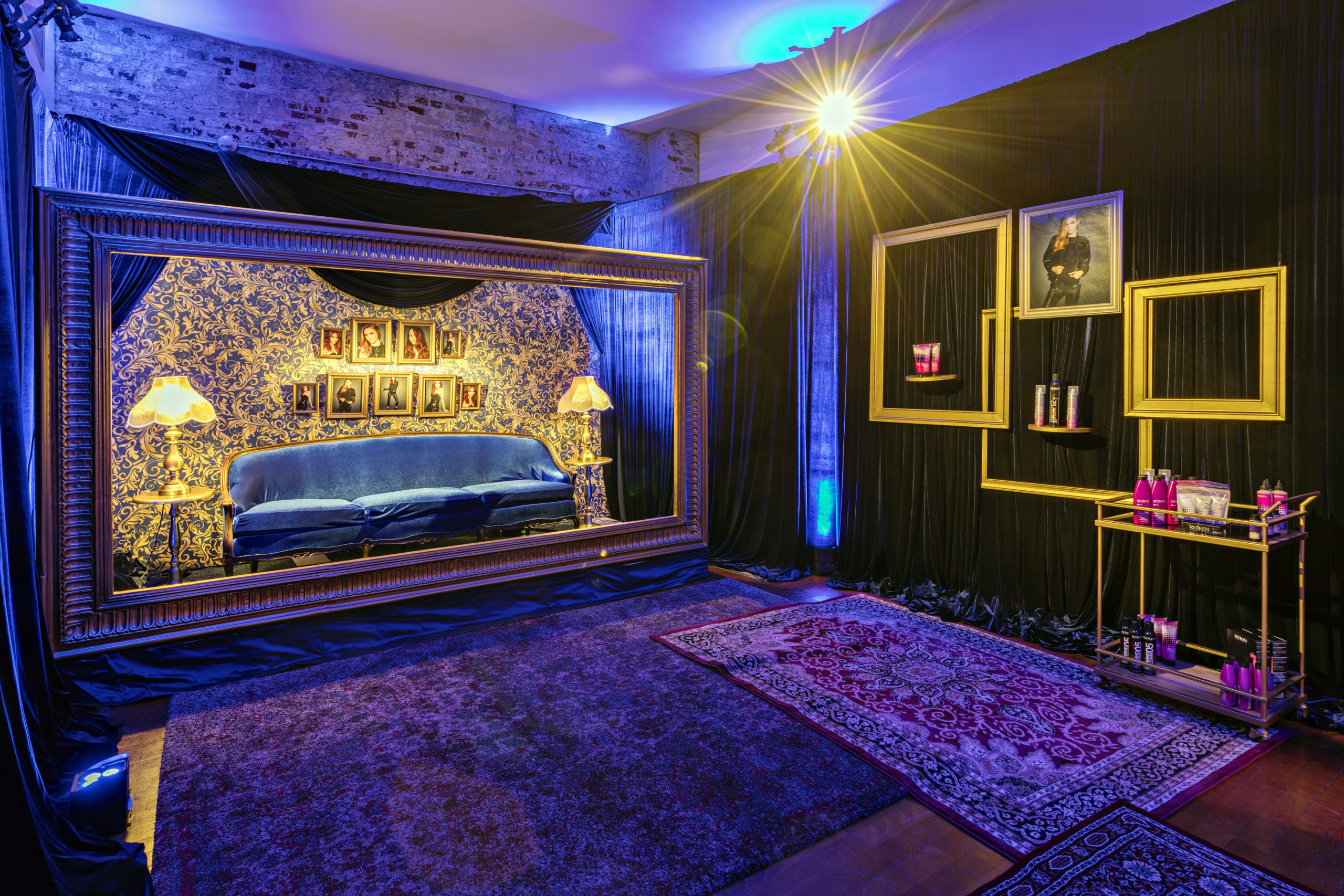 An empty event space was transformed into a vibrant pop-up where guests journeyed room to room, each inspired by a different Redken shade. From blonde to brunette, silver to black, every hair color had its own immersive home—turning the brand’s iconic line into a full-spectrum experience.
