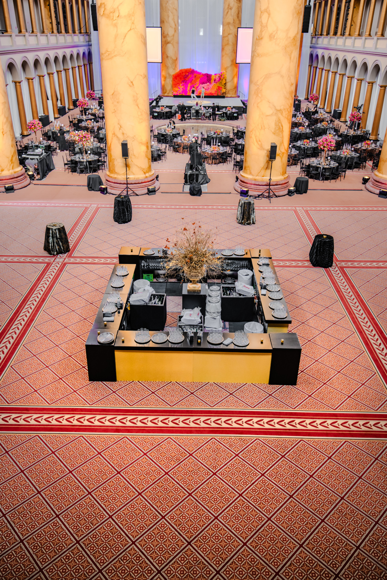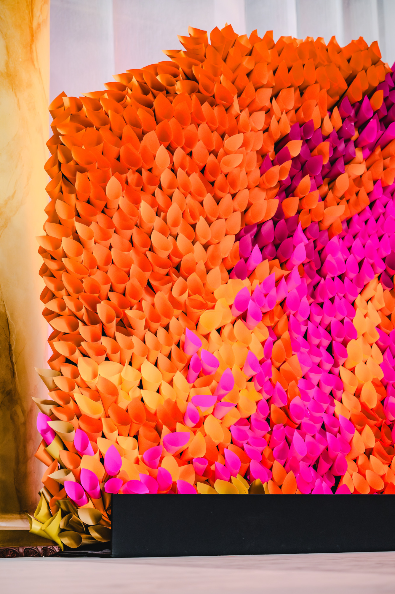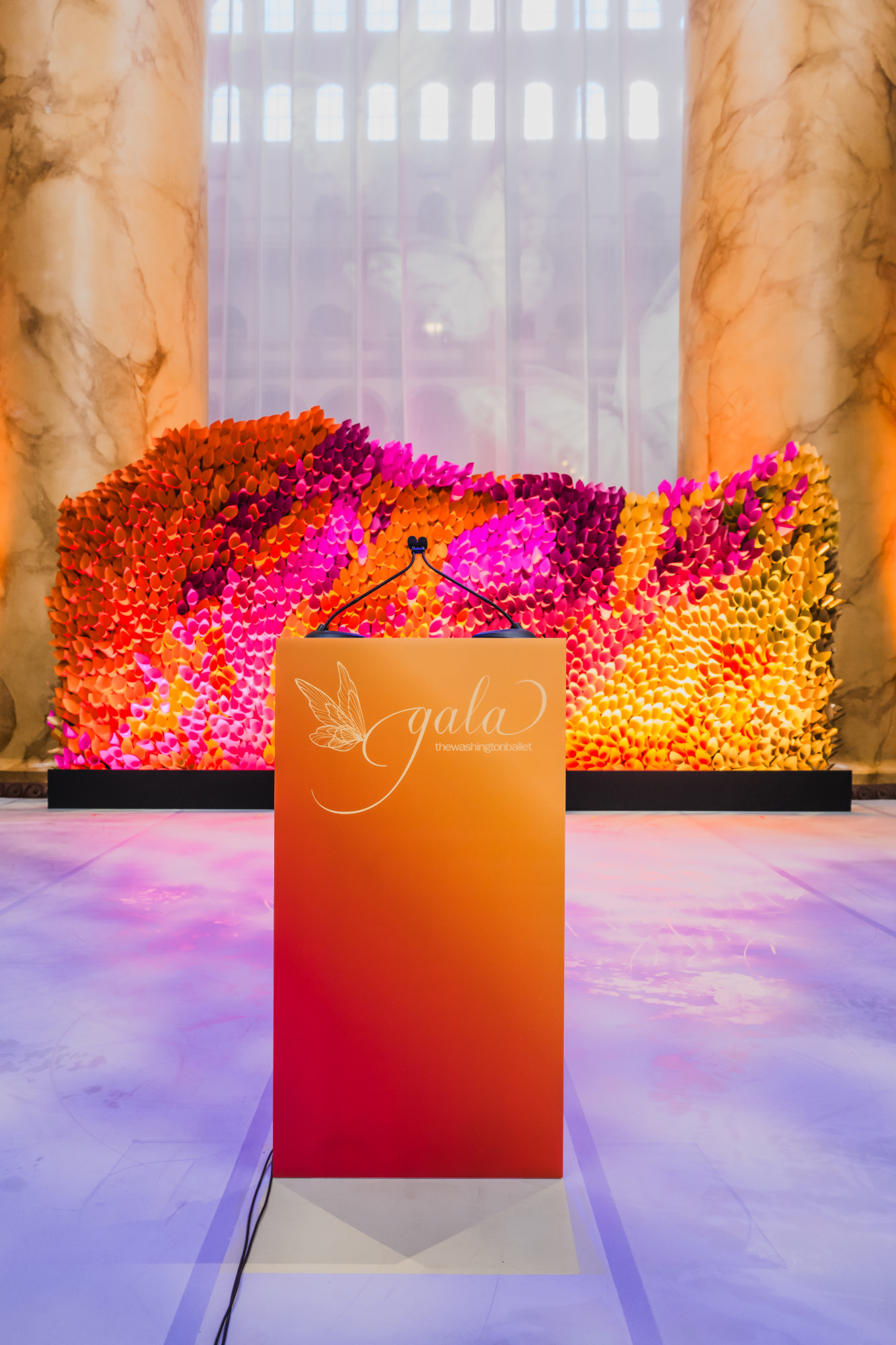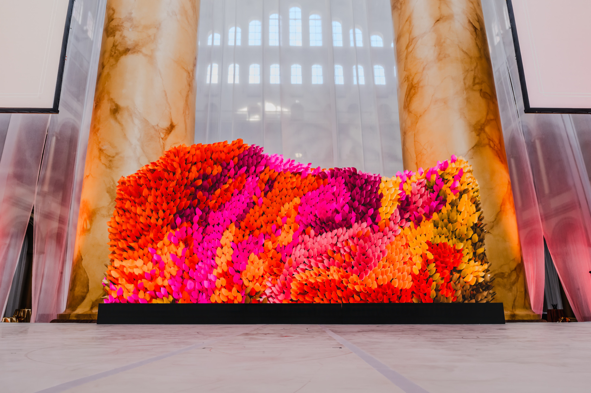 For the 2024 Washington Ballet Gala, we created a handcrafted paper backdrop inside the National Building Museum. Waves of layered cones in shifting colors and textures played with light and form, transforming simple materials into a striking, sculptural centerpiece for an unforgettable evening.