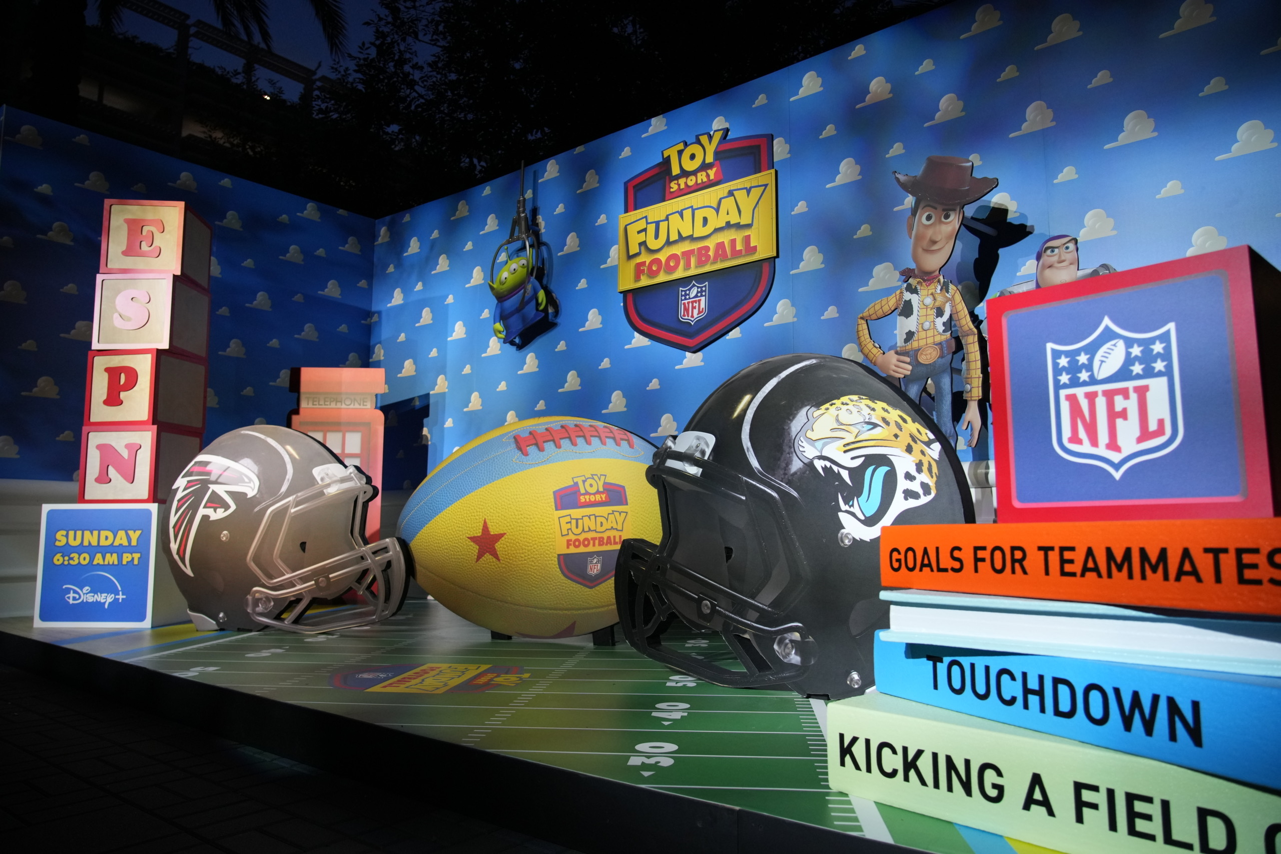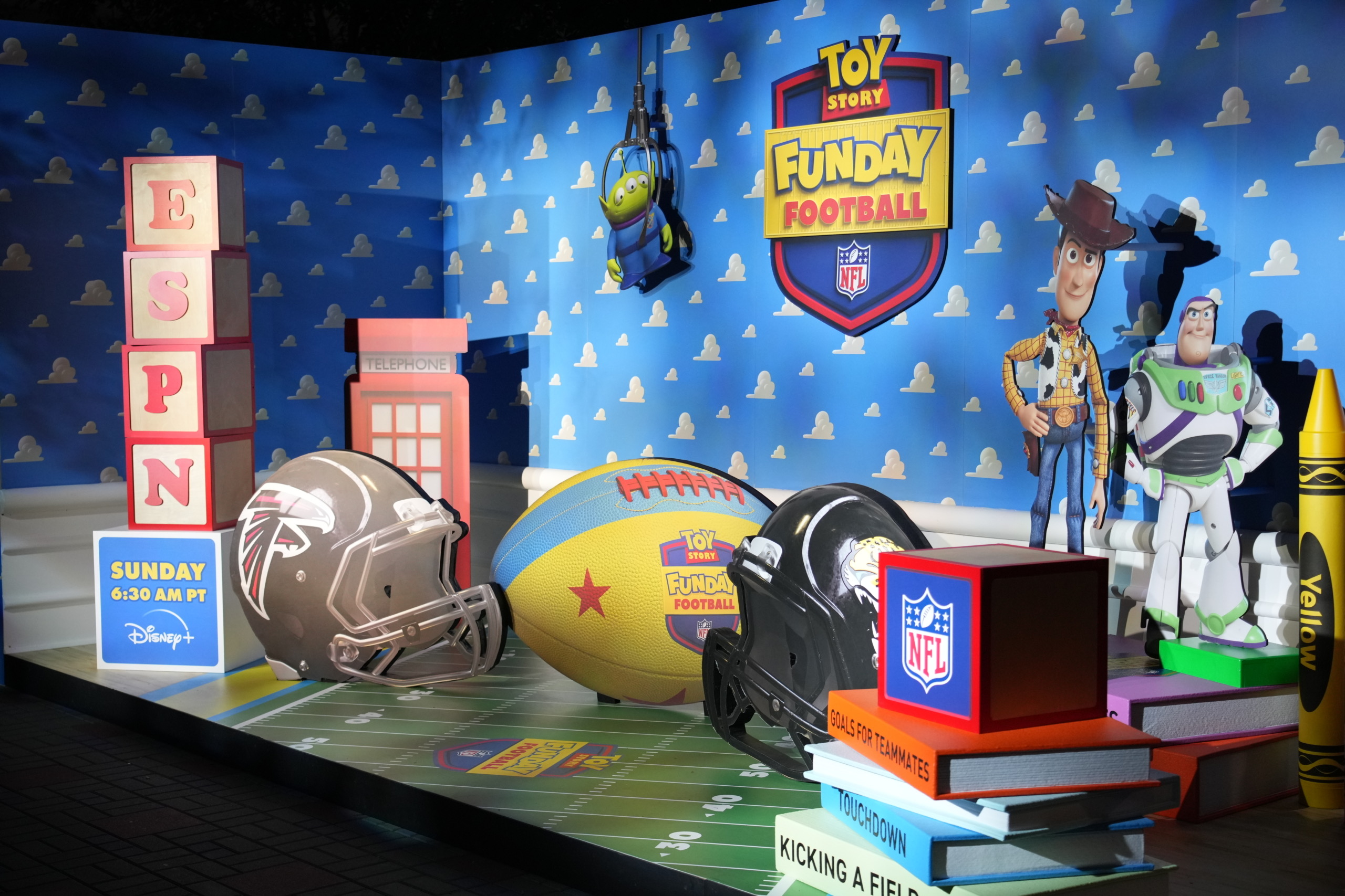 In partnership with Triton Productions, we produced a larger-than-life photo op for ESPN’s Toy Story Funday Football. Oversized helmets, building blocks, and Pixar favorites set the scene, inviting fans to step straight into Andy’s room for a playful NFL-meets-Toy Story moment made for the spotlight.