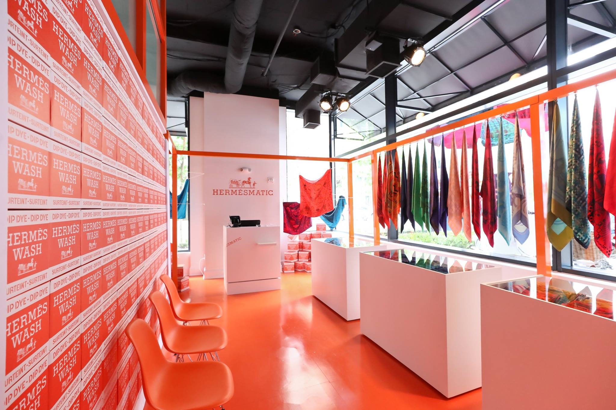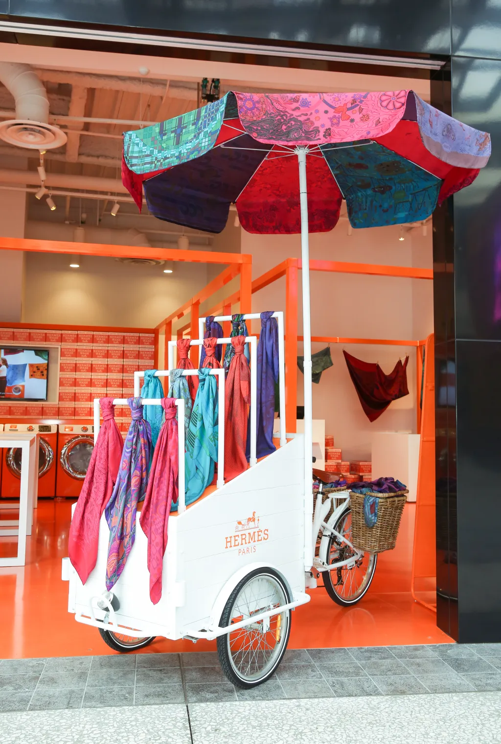 In five cities, empty storefronts became vibrant Hermès pop-ups, blending fashion and craft in a one-of-a-kind retail experience. Guests refreshed iconic Hermès scarves through in-store dip-dyeing, complete with whimsical washer-and-dryer stations—each pop-up reimagined to reflect the character of its unique space.